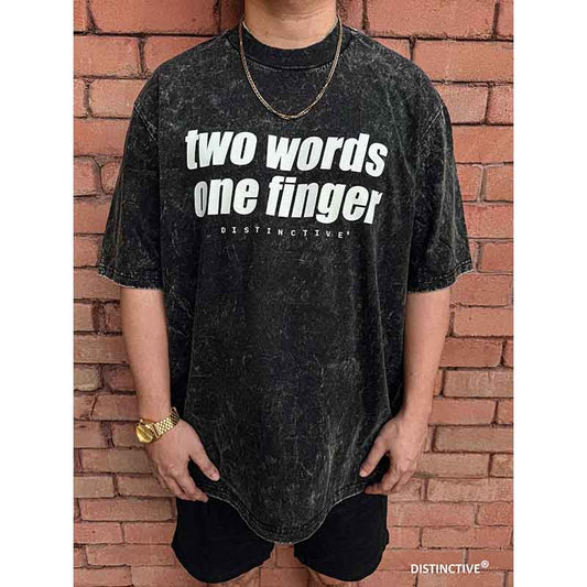TWO WORDS ONE FINGER - OVERSIZE VINTAGE ACID WASH