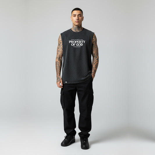 PROPERTY OF GOD TANK TOP SEWN SLEEVE - OVERSIZE VINTAGE MINERAL ACID WASH