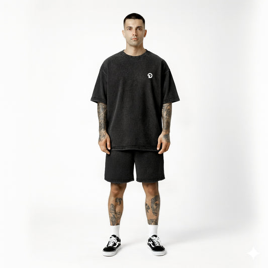 OVERSIZE HIGH DENSITY MATTE D LOGO BLACK - VINTAGE ACID WASH