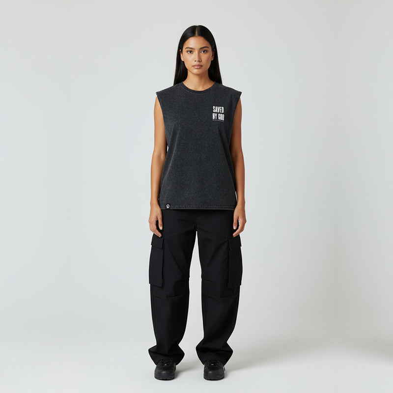 SAVED BY GOD TANK TOP SEWN SLEEVE - OVERSIZE VINTAGE MINERAL ACID WASH